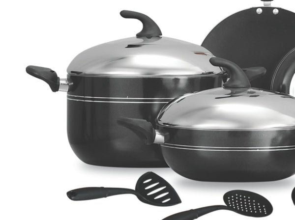 Chef Non-Stick Stylish Kitchen Set / Cookware Set With Combine Lid – (15 Pcs) 325Are you looking for a complete Best Nonstick Cookware set / Kitchen Set Price in Pakistan or wants to gift cooking set to someone? Welcome to Majestic CHEF, the ultimate solution for your kitchen.CHEF brings the most desirable Nonstick Cookware Set for you to help cooking easy.This gift set includes complete kitchen related products that your kitchen need like Casserole, Roti Maker, Frying Pan, Sauce Pan, Spoons and Karhai/wok. Non-stick surface engineered to reduce the ability of other materials to stick to it. Non-stick cookware is a common application, where the non-stick coating allows food to brown without sticking toCHEF nonstick Cookware Set-Jehaiz Set helps cook healthy and delicious food for yourself and your loved ones.Majestic CHEF is the perfect fit for your home. Majestic CHEF Cookware Set Features:Material: Non-StickNumber of Pieces: 15Dishwasher SafeFood GradeUltra-Durable Kitchen SetECO-FriendlyChemical Free Natural CoatingFree from Side EffectsSizes:Casserole With Lid22 cm, 26 cm, 30 cmWok With Lid28 cmSauce Pan With Lid18 cmFry Pan24 cmTawa/Roti Maker30 cmKitchen Tools3 Pcs Precaution while Cooking In Nonstick Cooking Pans:These are NONSTICK, so to extend the life of the coating use oil when cooking for the first time.Although the coating is very durable, use with care when using metal or sharp tools on the product.To prevent overheating and fire, always pay attention when pre-heating.To prevent damage, avoid storing salt food in cookware.You will gain better cooking results using low to medium flame.Always keep cookware clean when not in use.Safe Temperature For Nonstick Cookware:Temperature for Best nonstick cooking pans with teflon coating is upto 260 C ( 500 F) Without damaging finish. If temperature goes higher then maybe it cause to lose nonstick properties. use must exhaust fan while cooking. Do not use metal utensils in nonstick cookware for long use. Majestic CHEF is a No.1 Cookware Manufacturer in Pakistan. We have a vast collection of Kitchen accessories, Wok, Slicer, Ricer, and handheld food processor, which are helpful tools in your daily routine.